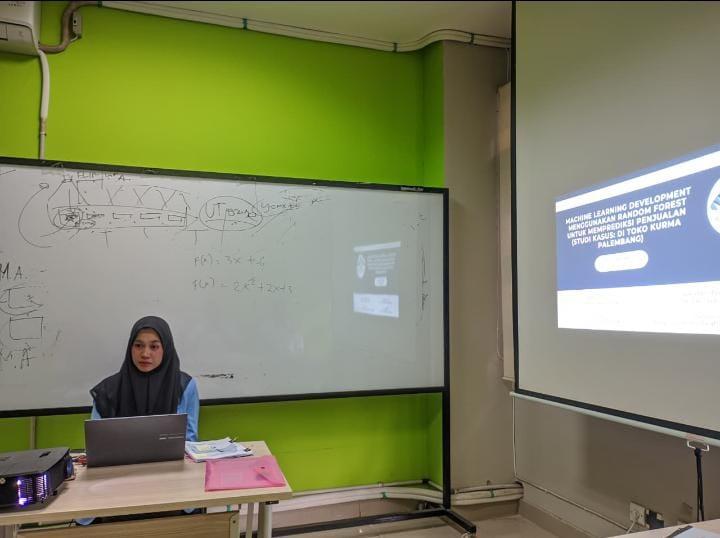 Agenda akademik ini dibuka pada pukul 08.00 WIB di Ruang BF203 oleh Alisa Almadira dalam sesi Seminar Proposal Skripsi. Alisa mempresentasikan rancangan risetnya yang berjudul "Machine Learning Development Menggunakan Random Forest untuk Memprediksi Penjualan (Studi Kasus: Di Toko Kurma Palembang)". Proposal penelitian ini dievaluasi secara komprehensif oleh dewan penguji yang diketuai oleh Bpk. Muhamad Kadafi, M.Kom., dengan Sekretaris Bpk. Irfan Dwijaya, M.Kom., serta didampingi oleh penguji materi Ibu Gusmelia Testiana, M.Kom. dan Bpk. Muhamad Leandry Dalafranka, S.Si., M.Kom..