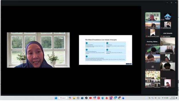 Dalam sesi perkuliahan tersebut, Prof. Dr. Maslinawati Mohamad menyampaikan berbagai konsep dan praktik penerapan e-business berbasis prinsip syariah di era transformasi digital. Materi yang diberikan mencakup pemanfaatan teknologi informasi dalam kegiatan bisnis digital yang tetap berlandaskan nilai-nilai syariah, seperti prinsip keadilan, transparansi, dan kehalalan dalam transaksi elektronik.