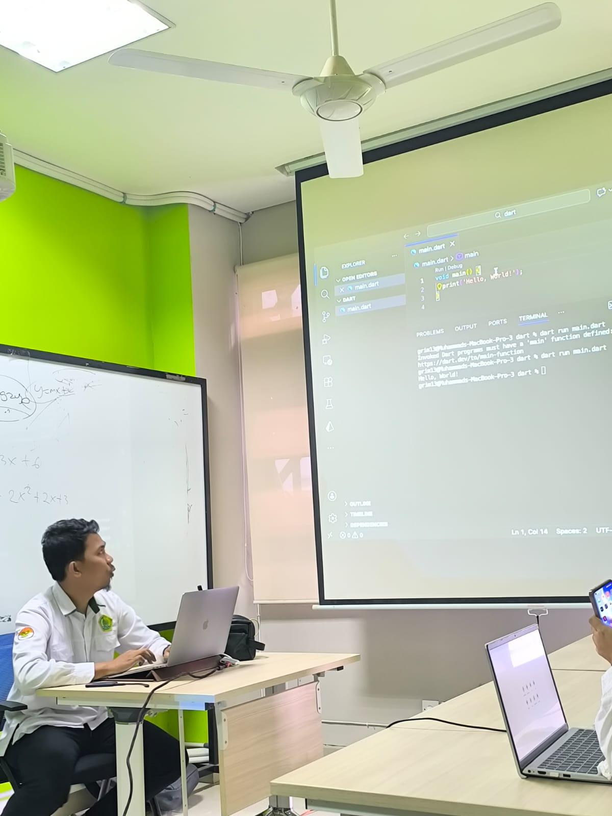 Kegiatan yang berlangsung di Ruang Ujian mulai pukul 09.00 hingga 12.00 WIB ini menghadirkan narasumber pakar di bidangnya Bapak Muhammad Bunyamin, M.Kom. Pelatihan ini difokuskan pada pengenalan dan pendalaman framework Flutter yang kini menjadi standar industri dalam pengembangan aplikasi mobile lintas platform (Android & iOS).