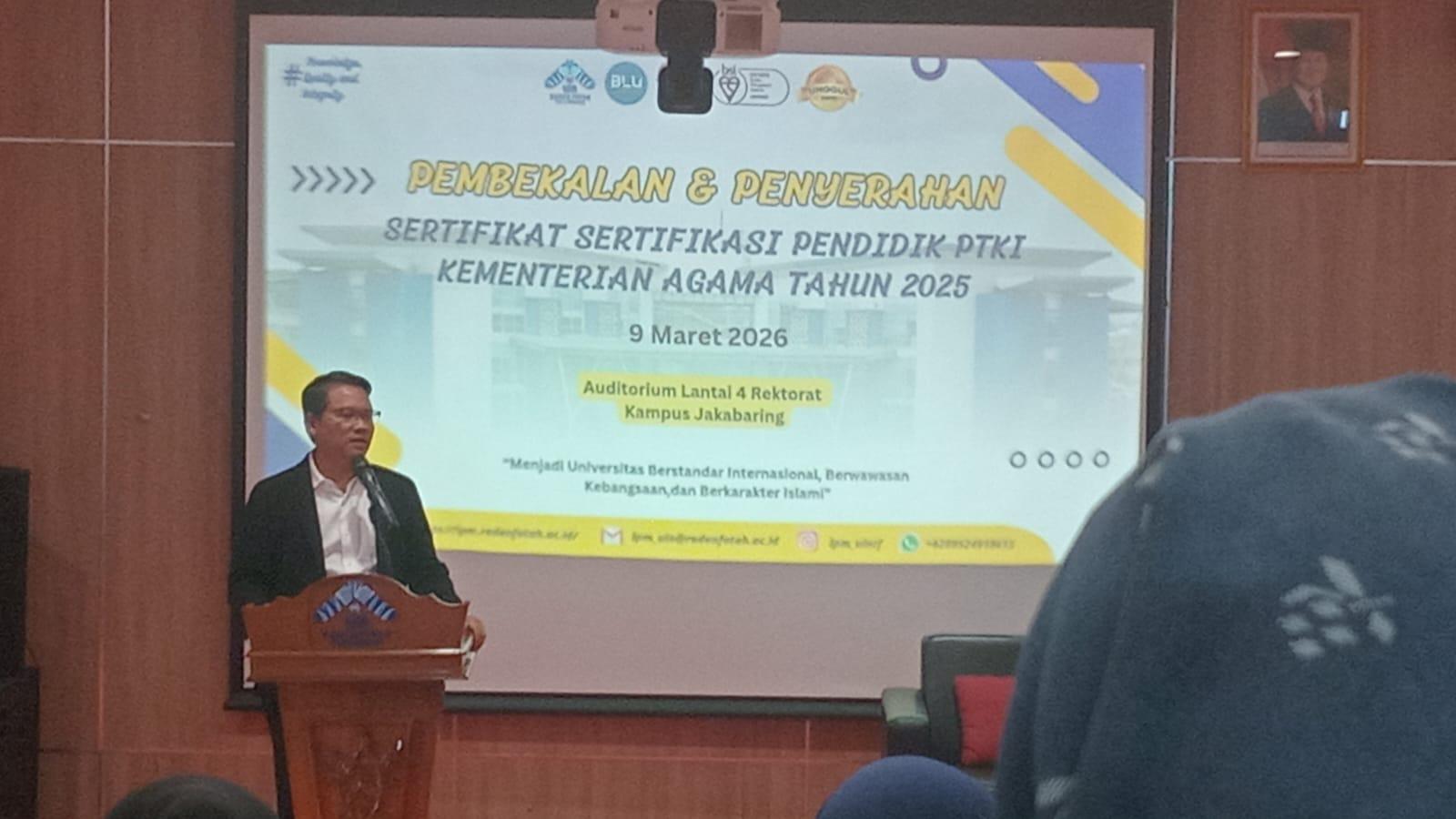 Palembang – Komitmen Program Studi Sistem Informasi Fakultas Sains dan Teknologi (FST) UIN Raden Fatah Palembang dalam meningkatkan standar kualitas pendidikan kembali dibuktikan. Pada hari ini, Senin (09/03/2026), sebanyak enam tenaga pendidik dari Prodi Sistem Informasi sukses mengikuti kegiatan "Pembekalan & Penyerahan Sertifikat Sertifikasi Pendidik PTKI Kementerian Agama Tahun 2025".