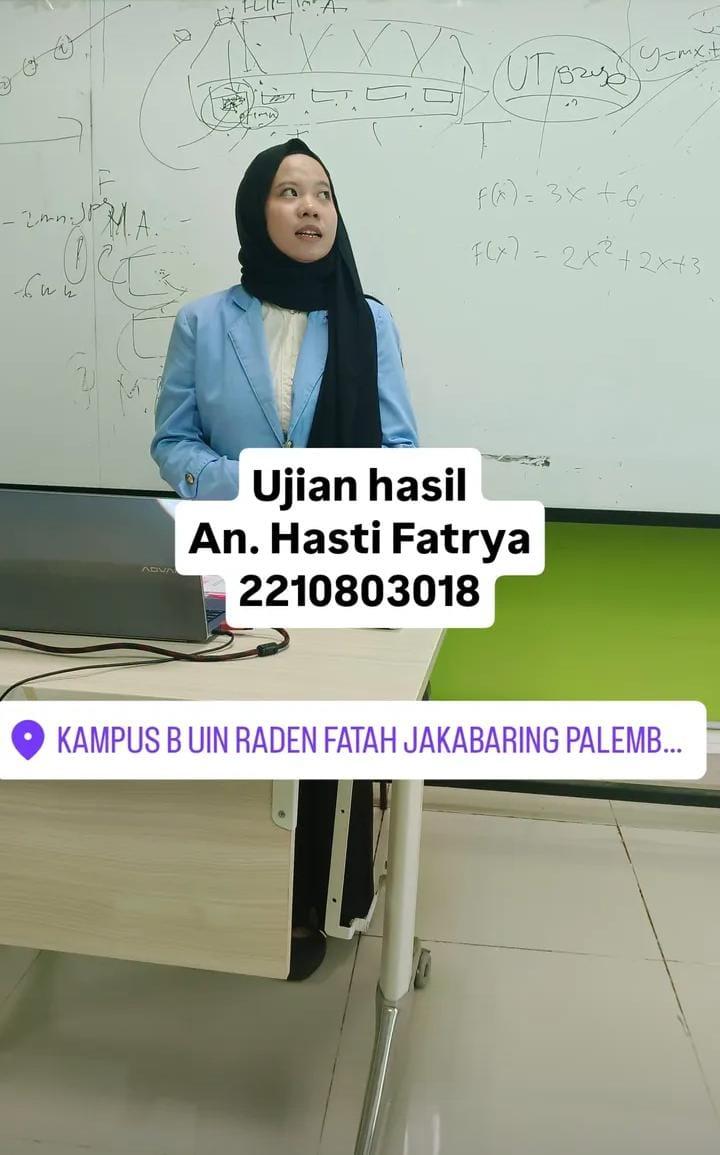 * Di Ruang BF203, Hasti Fatrya menguraikan karyanya yang berjudul "Sistem Informasi Dokumentasi dan Pelaporan Kondisi Right of Way (ROW) Berbasis Web pada PT PLN (Persero) ULP Sukarami". Evaluasi dilakukan oleh Ketua Ibu Gusmelia Testiana, M.Kom., Sekretaris Bpk. Muhamad Son Muarie, M.Kom., dengan penguji Bpk. Fenando, M.Kom. dan Ibu Reni Septiyanti, S.Si., M.Kom..