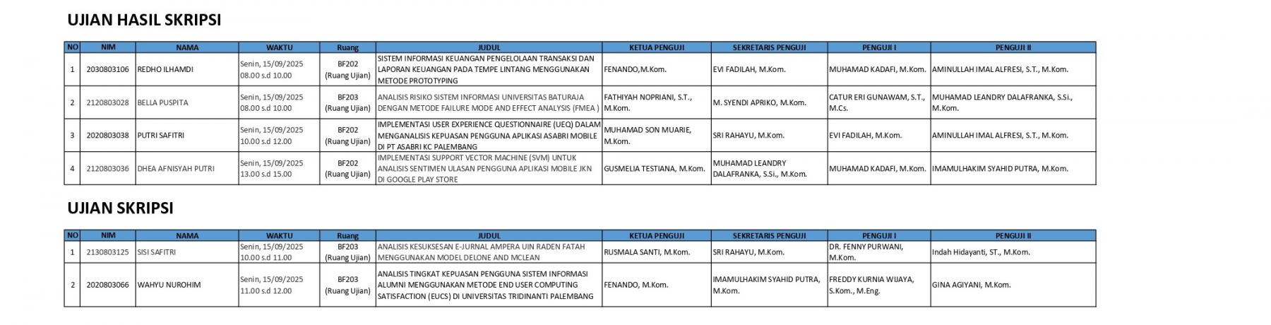 JADWAL UJIAN HASIL SKRIPSI DAN UJIAN SKRIPSI 15 September 2025