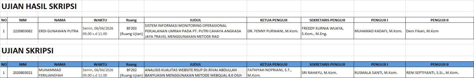 JADWAL UJIAN SEMINAR PROPOSAL, UJIAN HASIL SKRIPSI, DAN UJIAN SKRIPSI Tanggal 06 April 2026